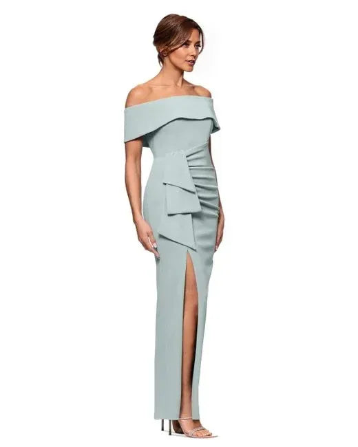 weitese's Elevate your refined allure with this off-shoulder mermaid gown. It features a structured off-shoulder neckline with dramatic ruched detailing for opulent charm, a tailored mermaid silhouette with bold side slit for refined elegance, and a sleek back design for polished sophistication. The soft hue ensures a captivating presence, making it perfect for formal events, weddings, or any occasion where you want to embrace understated glamour with show-stopping style.