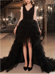 Vestido de fiesta de noche de tul de múltiples capas alto-bajo con espalda abierta