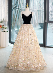 Vestido de fiesta con escote en V y cuentas color champán claro