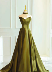 Vestido de fiesta largo de satén con escote en forma de A y escote en forma de corazón