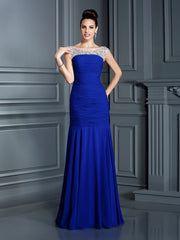 Vestidos largos de gasa sin mangas con cuello redondo y cuentas de corte trompeta/sirena