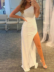 Vestidos de fiesta largos con cola barrida y un solo hombro, con lentejuelas y corte tubo/columna