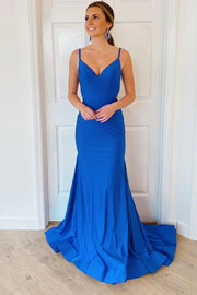 Vestido de fiesta de sirena con tirantes finos y cuello en V
