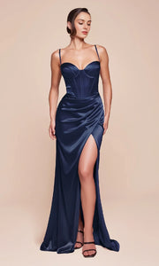 Vestido Weitese clásico de satén con tirantes finos y cola larga, vestido de fiesta con abertura y vestido de noche. - Marina de guerra / EE. UU. 2 / Reino Unido 6 / UE 32
