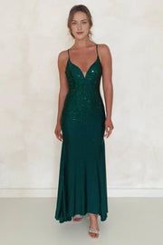 Vestido Weitese verde oscuro ajustado con escote en V pronunciado, tirantes finos, corte sirena, espalda cruzada, vestido de fiesta - Verde oscuro / EE. UU. 2 / Reino Unido 6 / UE 32