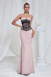 Vestido Weitese elegante sirena rosa sin tirantes de encaje vestido de fiesta vestido largo con cremallera vestido de fiesta sin mangas - EE. UU. 2 / Reino Unido 6 / UE 32