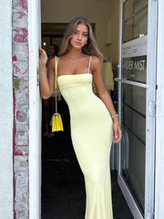 Vestido Weitese sexy de sirena con tirantes finos, satén amarillo, sin espalda, vestido de noche, vestidos de fiesta - EE. UU. 2 / Reino Unido 6 / UE 32