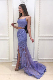 Vestido de fiesta largo de dos piezas con tirantes finos y encaje lavanda de Weitese