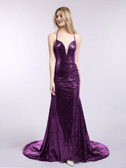Hermoso vestido de fiesta de graduación sin mangas con cola de sirena y lentejuelas, con tirantes finos y espalda descubierta
