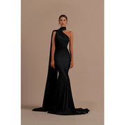 Vestido Weitese, vestidos formales para mujer, únicos, con pliegues tipo halter, negro, largo, formal, para fiesta, vestidos de graduación, tiendas de vestidos de graduación.