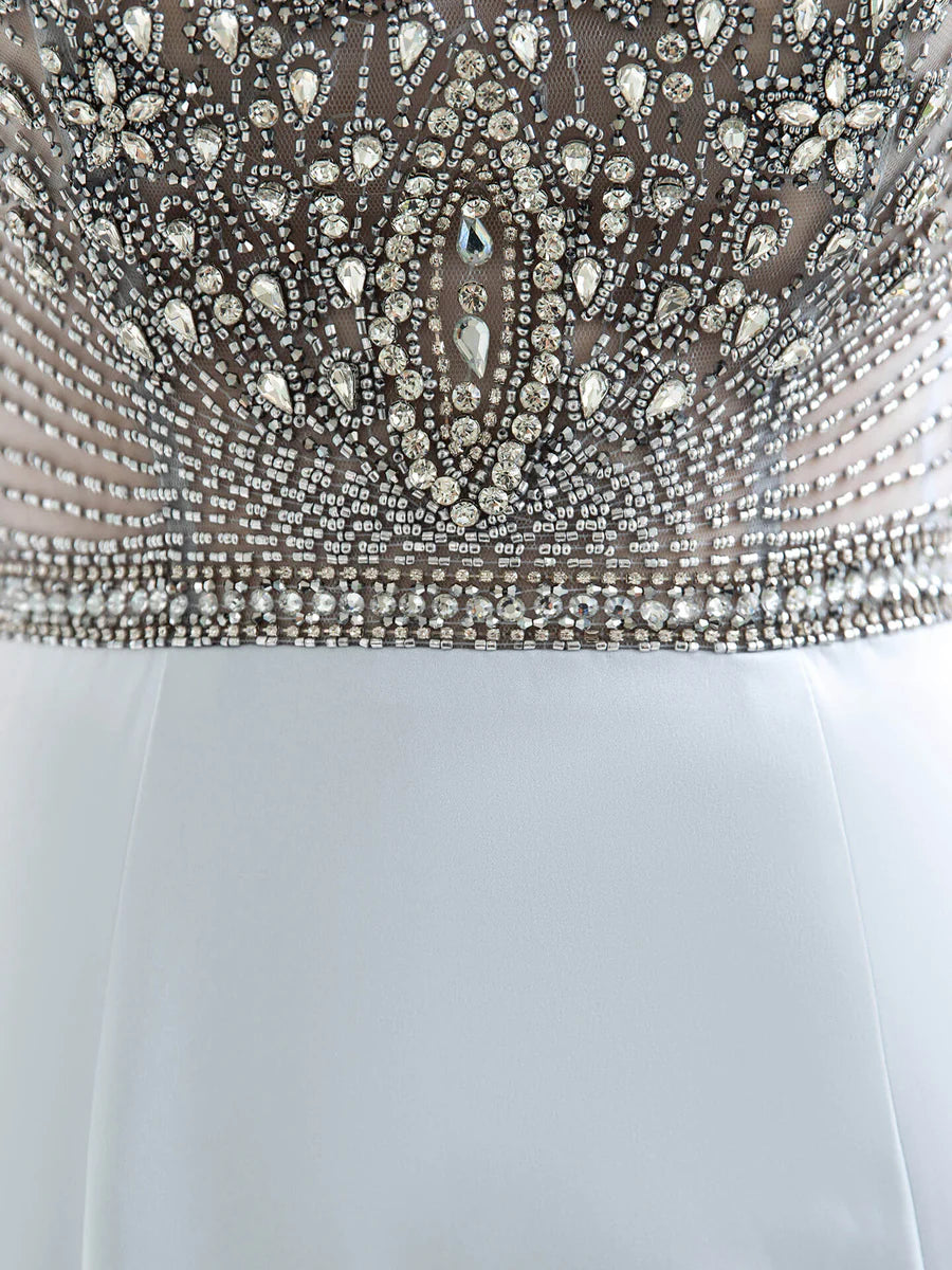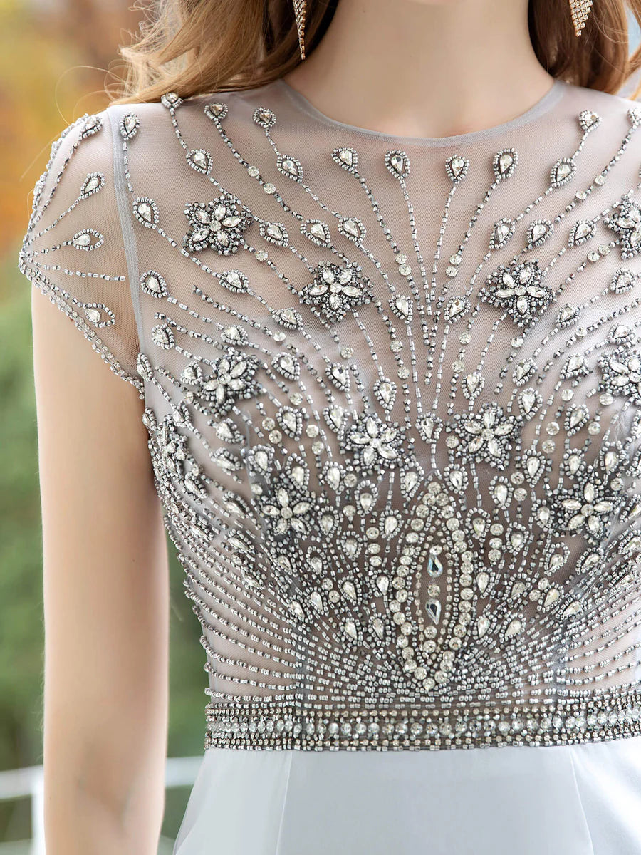 Vestido Weitese de sirena/trompeta de gasa, lujoso, sexy, formal, de noche, con mangas cortas, largo hasta el suelo, para fiesta.