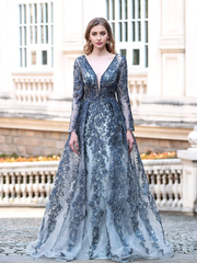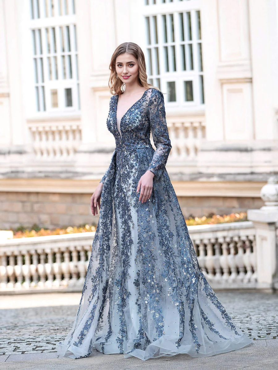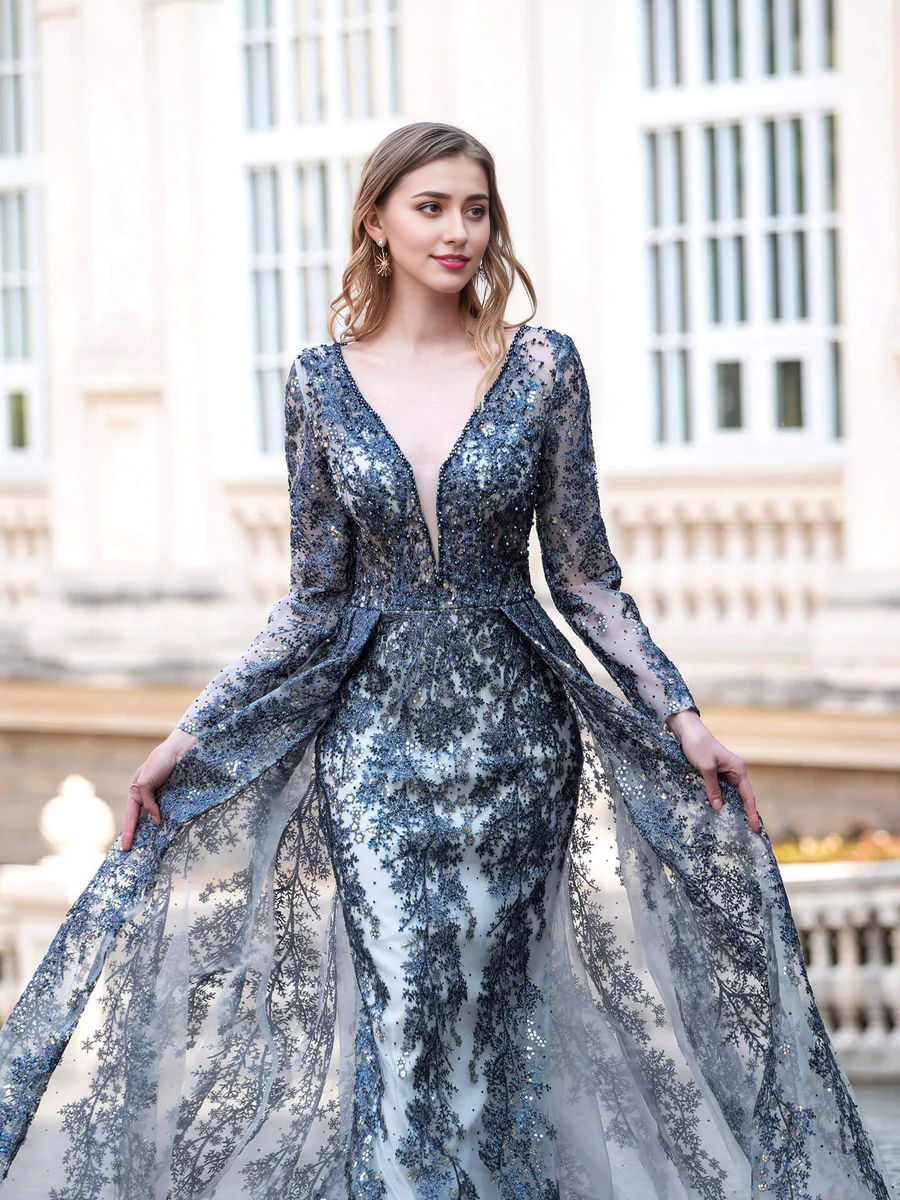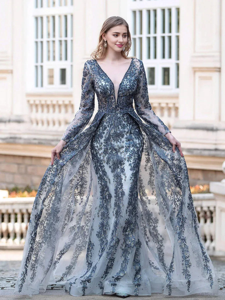 Vestido Weitese de sirena/trompeta con escote en V, vestido formal de noche, manga larga, largo hasta el suelo, vestido de fiesta.