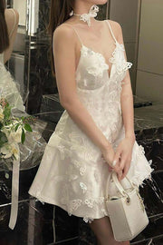 Vestido Weitese, tienda de vestidos de fiesta, blanco, escote en V, tirantes, apliques, minivestido de fiesta, trajes de cumpleaños, vestido de fiesta, vestidos formales para mujer. - EE. UU. 2 / Reino Unido 6 / UE 32