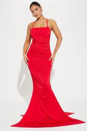 Vestido Weitese fruncido con tirantes finos rojos, espalda abierta, vestido de fiesta de sirena - EE. UU. 2 / Reino Unido 6 / UE 32
