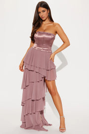 Vestido largo Weitese con volantes, color moca, corte A, hombros descubiertos, largo, escalonado, sin mangas, para fiesta - EE. UU. 2 / Reino Unido 6 / UE 32