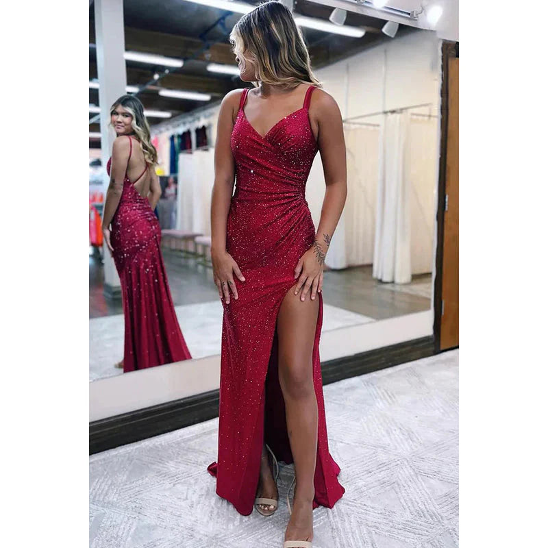 Vestido Weitese con escote en forma de corazón, lentejuelas y abertura, vestido formal de noche para fiesta de graduación - EE. UU. 2 / Reino Unido 6 / UE 32