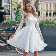 Vestido de novia corto Weitese, hecho a medida, de manga larga, con apliques de flores y cremallera, corte A, de encaje, para fiesta