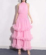 Vestido Weitese de patchwork liso con cordones y cintura alta, largo, elegante, sin mangas, corte A, para fiesta y graduación. - Rosa / EE. UU. 2 / Reino Unido 6 / UE 32