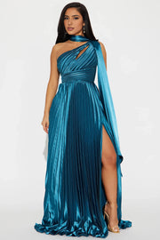 Vestido Weitese inolvidable, vestido de noche de satén sin mangas, corte A, plisado, verde azulado, hombros descubiertos, mangas con vuelo, vestido de fiesta - EE. UU. 2 / Reino Unido 6 / UE 32