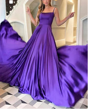 Vestido de fiesta de satén con escote redondo y tirantes finos