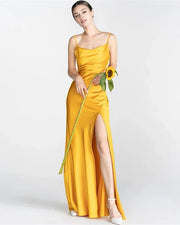 Vestidos de dama de honor de satén con tirantes finos y espalda descubierta y abertura lateral