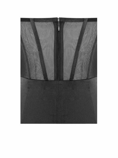 Vestido de fiesta con corsé de encaje satinado y abertura lateral
