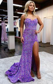Vestidos de fiesta de sirena con lentejuelas brillantes y abertura - EE. UU. 2 / Reino Unido 6 / UE 32