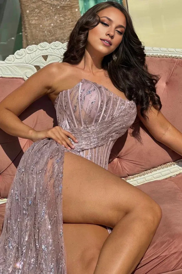 Vestido Weitese brillante/magnífico, tubo, escote barco, sin mangas, plisado, lentejuelas, vestido de fiesta de graduación, abertura lateral alta y cola, vestido formal de noche.