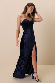 Vestidos formales Weitese para mujer, elegantes, de terciopelo azul marino, plisados, sin tirantes, con abertura, vestidos de fiesta. - EE. UU. 2 / Reino Unido 6 / UE 32
