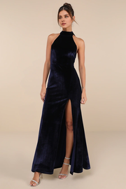 Vestidos formales Weitese para mujer, fabuloso vestido largo de sirena sin mangas de terciopelo azul marino con espalda descubierta, tiendas de vestidos de fiesta. - EE. UU. 2 / Reino Unido 6 / UE 32