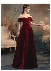Vestidos formales Weitese para mujer, vestido de fiesta largo burdeos con hombros descubiertos, vestido de noche de terciopelo de corte A, tiendas de vestidos de fiesta - EE. UU. 2 / Reino Unido 6 / UE 32