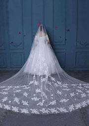 Velos de novia estilo catedral de tul de una sola capa con apliques de encaje