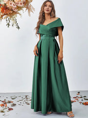 weitese's Elevate your regal elegance with this emerald green satin off-shoulder A-line maxi dress. It features lustrous satin fabric with an asymmetric off-shoulder neckline for opulent allure, a voluminous A-line skirt with subtle pleating for refined charm, and a statement bow detail at the back for sophisticated flair. The rich emerald green hue ensures a standout finish, making it perfect for formal events, winter galas, or any occasion where you want to blend luxurious craftsmanship with bold, eye-catching design.