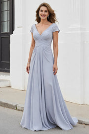 Elegant A Line V-Neck Cap Sleeve V Back Sweep/Brush Train Mother of the Bride Dress