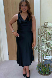 Vestidos formales/Vestido de dama de honor color marfil con escote vuelto y corte tubo hasta la rodilla - Negro / EE. UU. 2 / Reino Unido 6 / UE 32