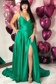 Vestidos formales/Vestido de fiesta largo rojo sencillo con escote en V y abertura - Verde / EE. UU. 2 / Reino Unido 6 / UE 32