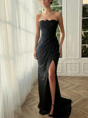 Vestidos de fiesta de corte sirena/trompeta, escote corazón, sin tirantes, sin mangas y hasta el suelo