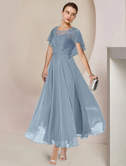 Vestido elegante para madre de la novia de corte A de Weitese, escote redondo, largo hasta la rodilla, de gasa, con encaje, sin mangas y apliques de cuentas.