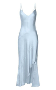 Este vestido Weitese presenta un elegante diseño drapeado asimétrico, confeccionado en satén suave con un corte al bies que realza su favorecedora silueta. Su corte azul se complementa con delicados tirantes finos, lo que lo convierte en una opción elegante para cócteles, graduaciones o eventos formales. Su color liso minimalista y su largo maxi ofrecen una sofisticación atemporal con un toque moderno.