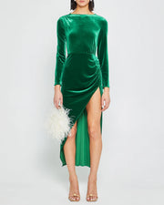 Vestido Weitese vintage de fiesta, de columna, hasta los tobillos, de manga larga, con cuello barco, de terciopelo, plisado y espalda abierta. - EE. UU. 2 / Reino Unido 6 / UE 32