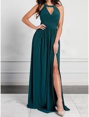 Weitese Women's Prom Dress Party Dress Wedding Guest Dress Long Dress Maxi Dress Pink Wine Green Sleeveless Plain Backless Summer Spring Fall Halter Neck Elegant Wedding Guest Evening Party Vacation - Verde / EE. UU. 2 / Reino Unido 6 / UE 32