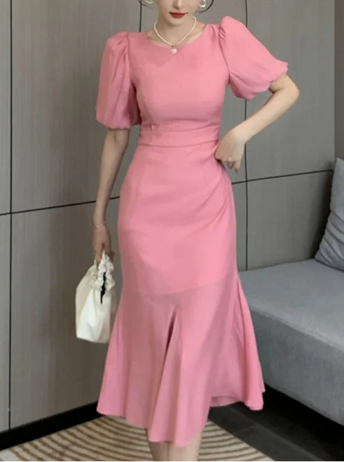 Robe de bal mi-longue élégante à manches bouffantes et coupe trapèze