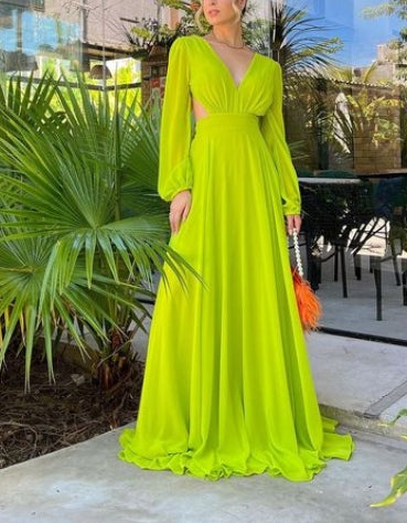 Robe de bal élégante en forme de A avec décolleté en V profond et dos nu