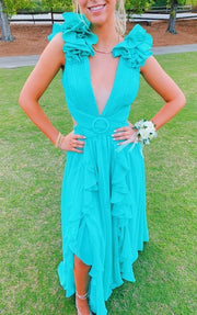 Robe de bal trapèze à décolleté en V profond et dos nu avec lacets