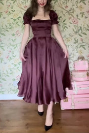 Robe de bal de fin d'études élégante à col carré et coupe trapèze