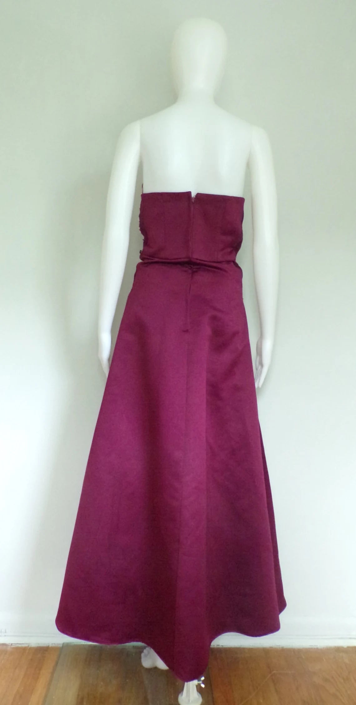 Robe de soirée élégante coupe trapèze, sans bretelles, dos nu, longueur au sol, avec appliques en dentelle - US 2 / UK 6 / UE 32