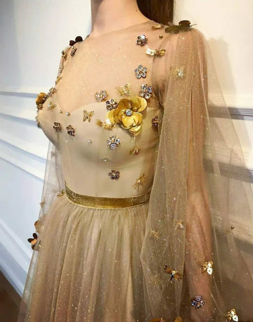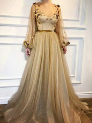Robe de bal trapèze à col rond et manches longues