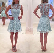 Robe de bal trapèze sans manches en dentelle transparente avec nœud papillon et perles