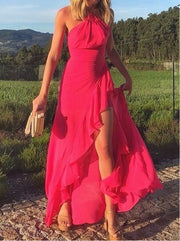 Robe de bal trapèze sans manches, dos nu et fente