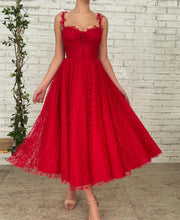 Robe de bal trapèze en tulle et dentelle à bretelles spaghetti